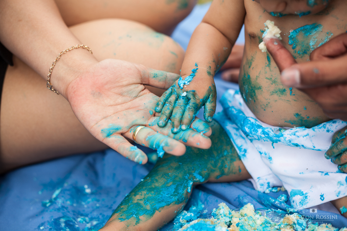 Para a festa de 1 ano de Vitor, muita comemoração, mas antes um delicioso ensaio para esmagar o bolo! Acompanhe esta fofura